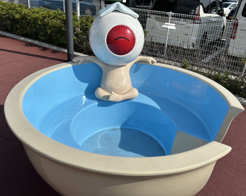 駅の近くの広場(公園)には子供が遊べる遊具があり、目玉のおやじのお椀と一反木綿のうんてい。
